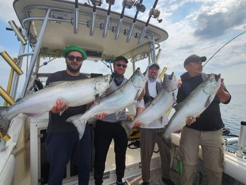 Full Day (8-9 Hours) Guided Salmon Fishing Trips on Lake Ontario in our fully equipped Albemarle 265 Fisherman Express. You need to bring nothing but your favorite snacks and drinks and a big cooler!